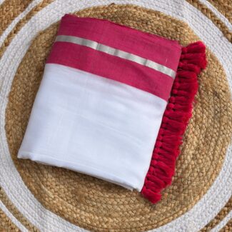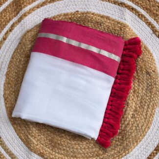 PALLU : the edge is adorned with rich magenta tassels