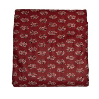 This fabric features a vibrant, deep maroon-red base with an intricate paisley block print, offering a bold and classic look that exudes traditional charm. Print Type: Traditional Ajrakh Hand-Block Print