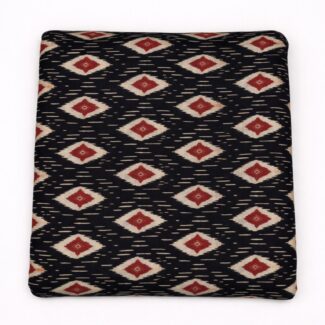 This fabric features a striking Ikat-inspired geometric print, blending traditional textile art with a clean, contemporary aesthetic. It is a versatile choice for structured ethnic wear
