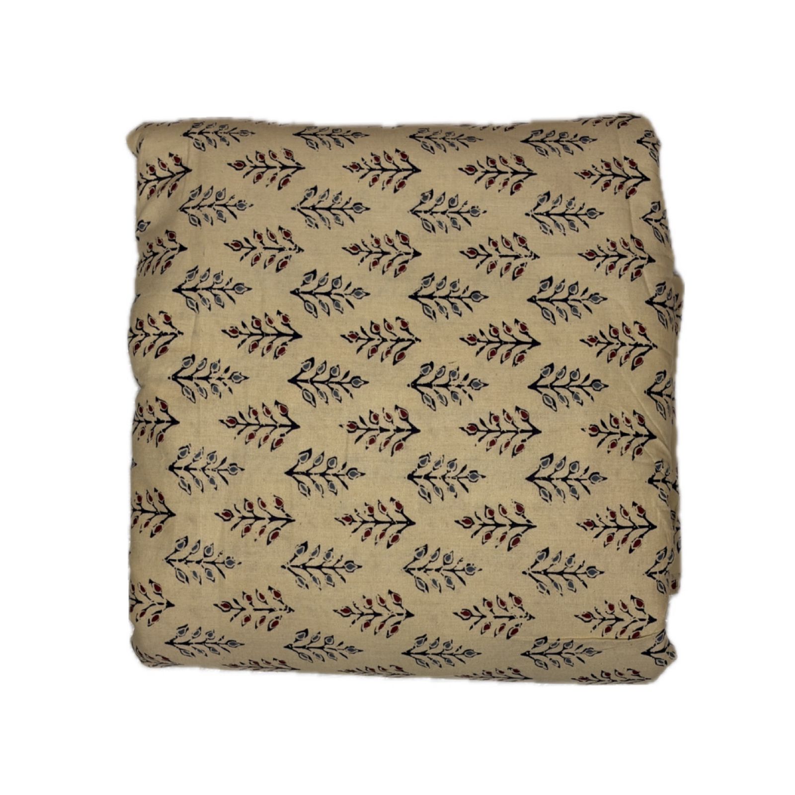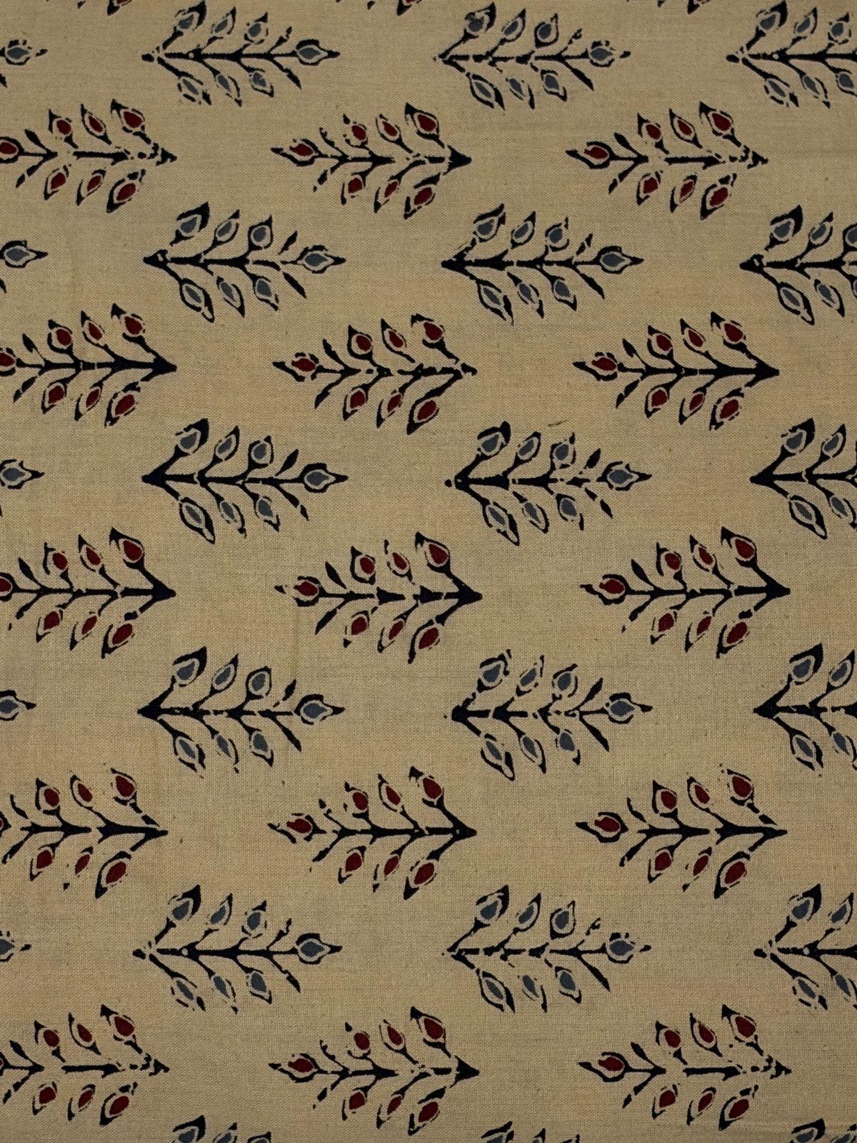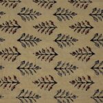 This fabric features an elegant beige base with a sophisticated botanical block print