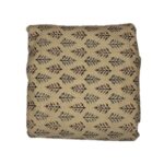 Color Palette: A warm biscuit or light beige ground that creates a soft, natural backdrop. The motifs are rendered in charcoal black with deep maroon or rust-red