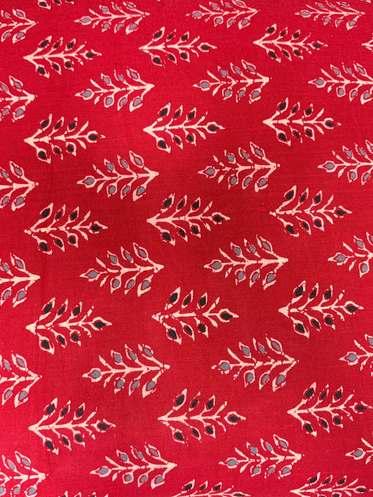 This fabric is a vibrant and culturally rich textile, perfect for traditional Indian silhouettes or contemporary fusion wea This is a high-quality printed fabric, likely a soft cotton