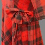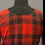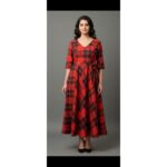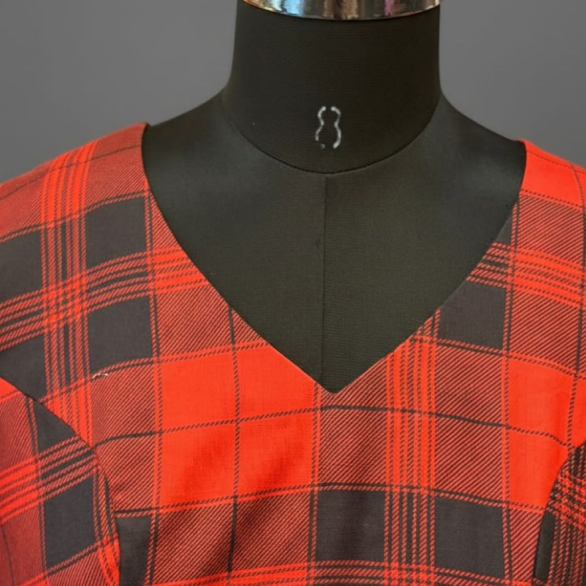 This elegant fit-and-flare midi dress features a striking red and black checkered tartan pattern, making it a bold choice for both semi-formal and casual