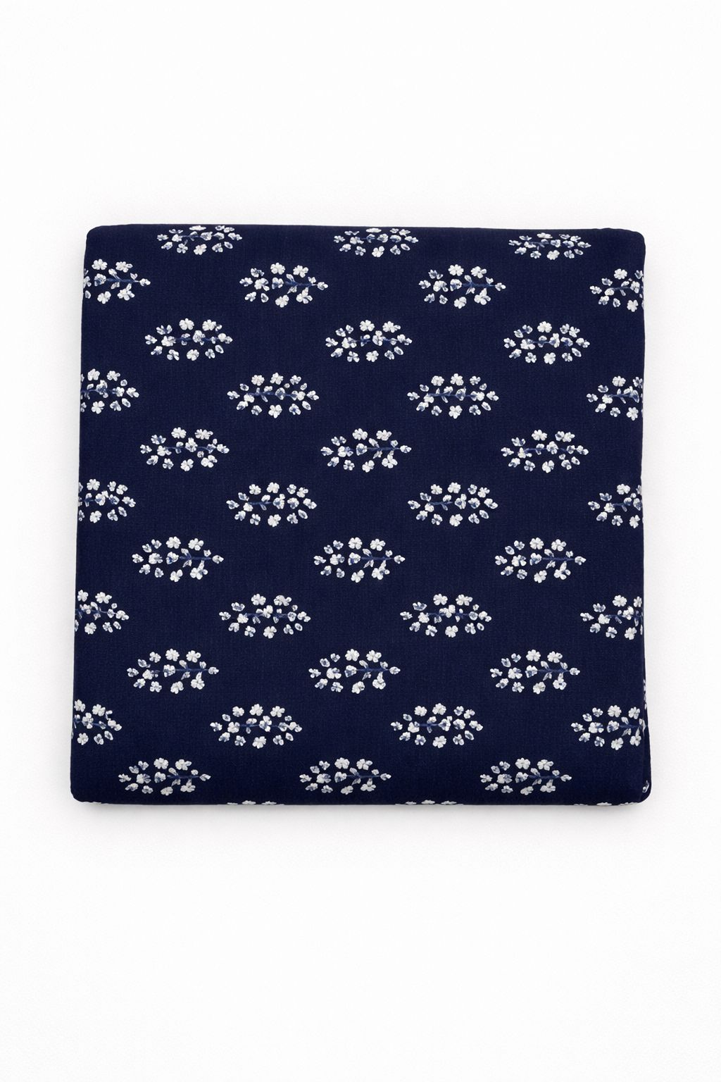 .DESIGN/PATTERN : The fabric features a delicate white floral pattern with soft slightly blurred flower motifs and leaves arranged in a