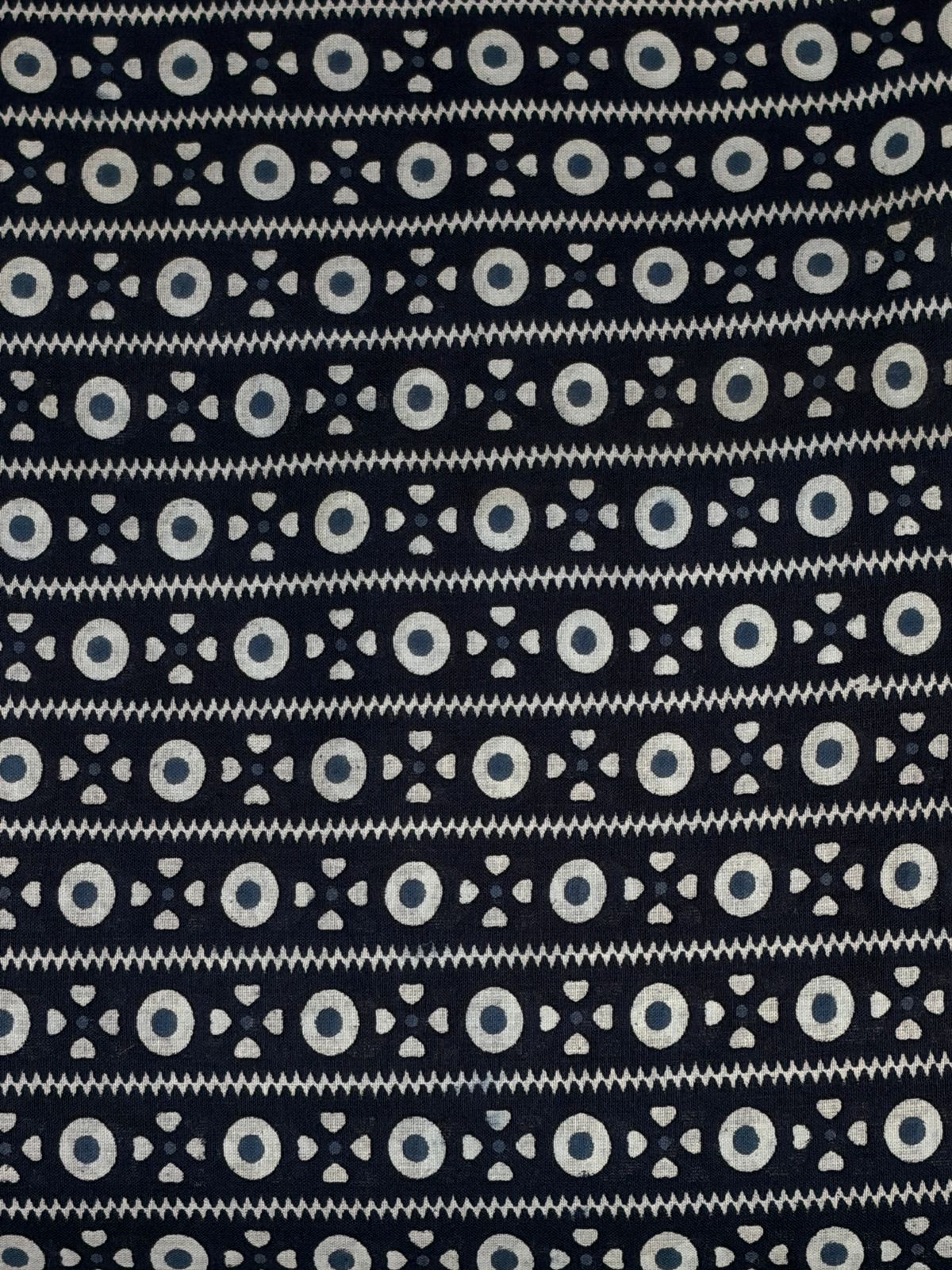 Zig-Zag Borders: Fine “Leheriya” style wavy lines that separate the main pattern rows, adding a sense of movement.