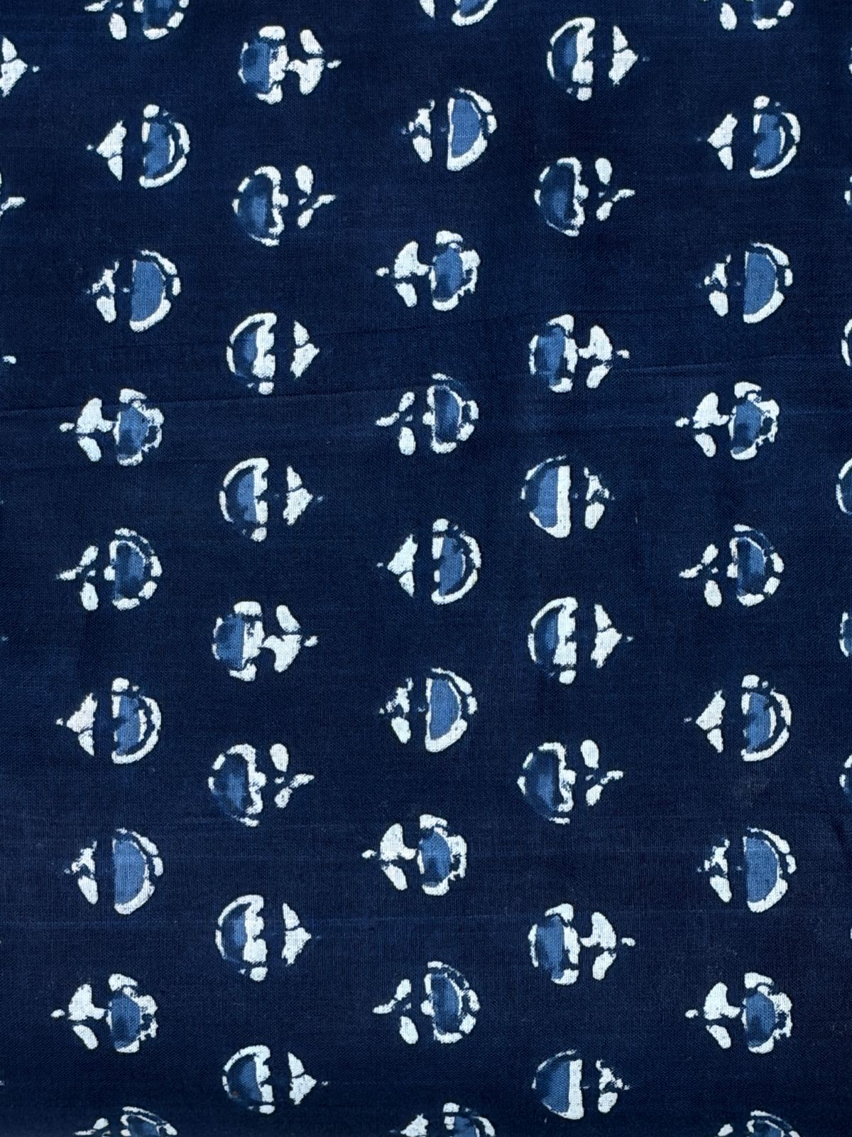 This fabric is a beautiful addition to a traditional textile collection, featuring a classic Indigo Dabu or hand-block print.