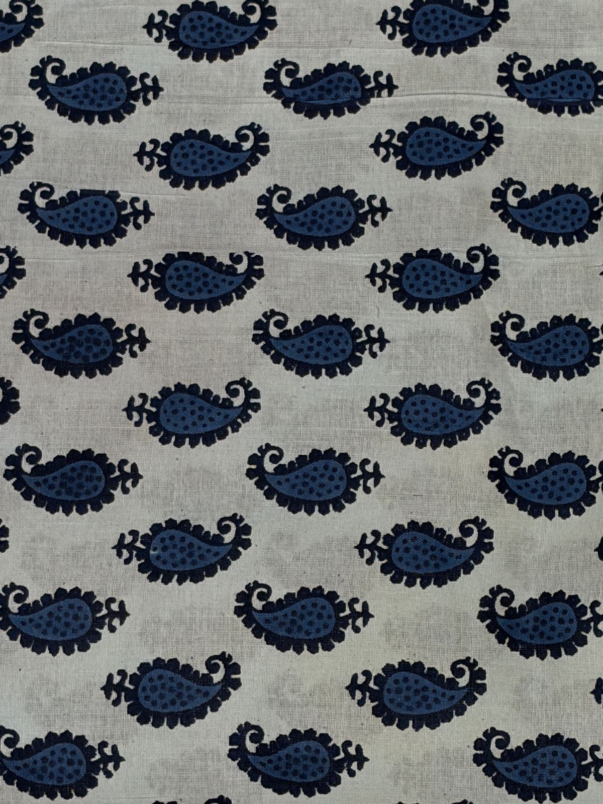 ​Print Style: A rhythmic Paisley or Mango motif pattern. Each paisley is filled with fine stippling (dot-work), adding a layer of visual texture and depth to the simple silhouette.