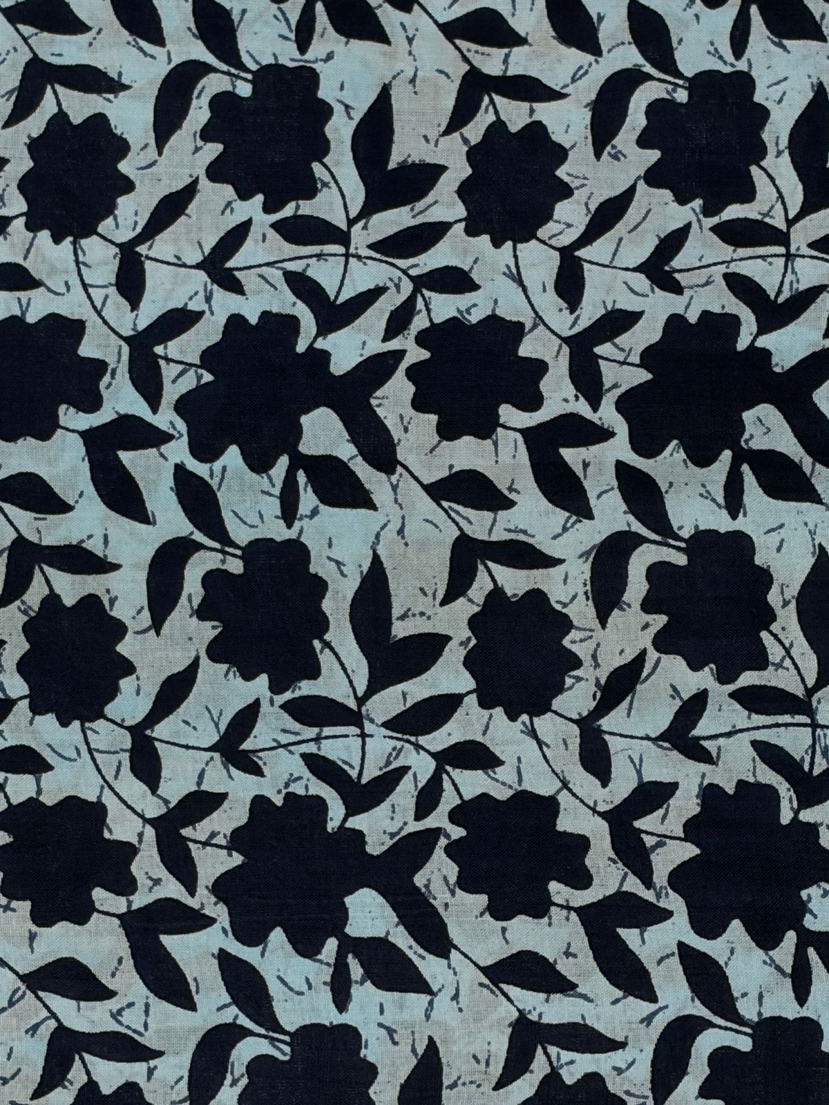 This fabric is a striking example of Bold Floral Hand-Block Print, featuring a large-scale botanical pattern that offers a more dramatic and modern silhouette compared to smaller “butti” designs