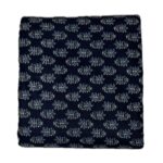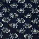 This fabric is a classic example of Indigo Hand-Block Print, a staple in traditional Indian textiles. The deep navy blue base, achieved through indigo dyeing, provides a rich contrast for the light blue and white floral motifs.