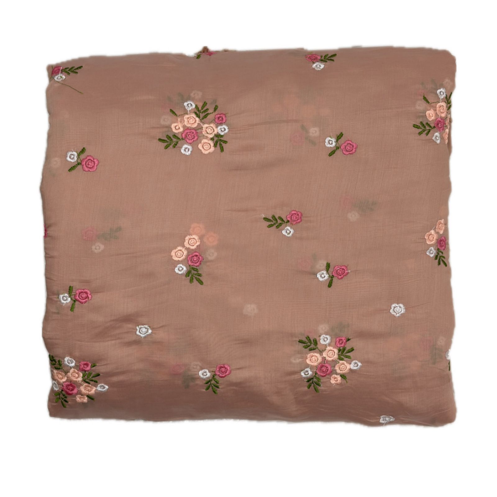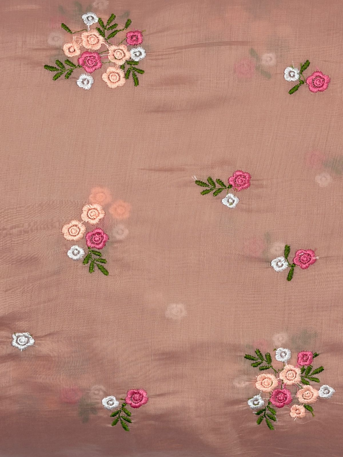 This Mul Chanderi fabric exudes a soft, vintage charm with its warm Dusty Rose (onion pink) base