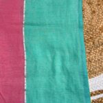 Metallic Highlight: The transition between the teal and pink sections is defined by a sleek, shimmering silver zari stripe, adding a touch of modern elegance.