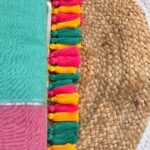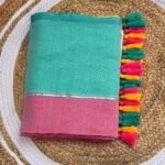 Pallu Finishes: The edge of the saree is decorated with playful, multi-colored silk tassels. The tassels alternate between: