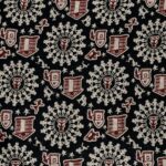 .PATTERN: a repeating diamond or lozenge motif each diamond has a vibrant red center framed by a crisp white border